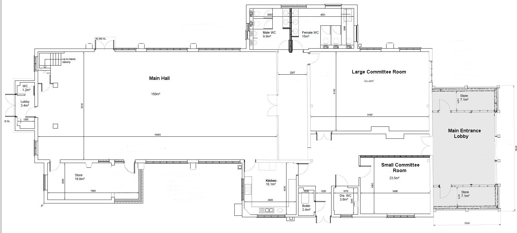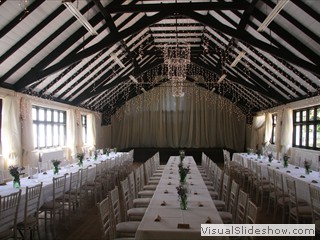Access is from the rear of the building via a new entrance with automatic opening glass doors leading into a lobby atrium. This area could be used for welcoming guests at a private function or small displays for events held at the Hall. Main Hall The main hall is rectangular in shape and approximately 18.4m x 8.3m including the staging area, making a total space of approx 150m². It was built in the 1920's and has a solid maple floor with plenty of natural light from double glazed windows on both sides. Hirers either book this Hall separately in which case there may be other events taking place in the Large Committee Room or can book the whole building for their exclusive use e.g. weddings and parties.