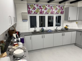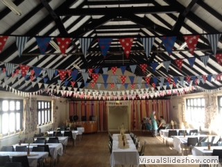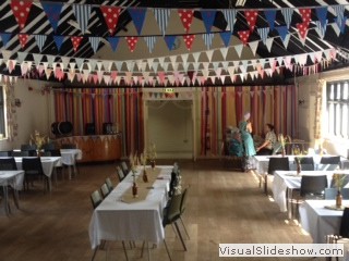 The Hall has a public entertainment license which permits music and dancing, but all entertainment must end by 11.00pm (Mon - Sat) and 10.30pm on a Sunday, the site must be cleared and empty by 11.30pm (Mon - Sat). The whole building is a NO Smoking area. There are plenty of tables and chairs to use with more than one event on the same day, but for exclusive use there is seating for approx 150 but with staging and tables 100 is more comfortable. The main hall has an audio system and noise limiter. Hirers can connect wirelessly by bluetooth, 3.5mm mini jack plug or XLR cable. There are hard wired microphones and wireless microphones available for use on application. The main hall also has a projector and screen which can be made available on application. Connections via HDMI or bluetooth plus connection to our audio speakers. For more information about using the Hall as a Wedding Reception Venue please click here Slideshow of recent Weddings in the Hall. The shared kitchen is included within the price. If alcoholic drinks are being sold on site then we have a prefered supplier who offers a mobile bar service based in Cambridge http://www.banquetinn.co.uk/ or a Temporary Event Notice under Licensing Act 2003 will need to be applied for, but only after approval by the Booking Secretary. Floor Plan - we hope the attached file will give some indication of the layout of the building for your planning purposes.