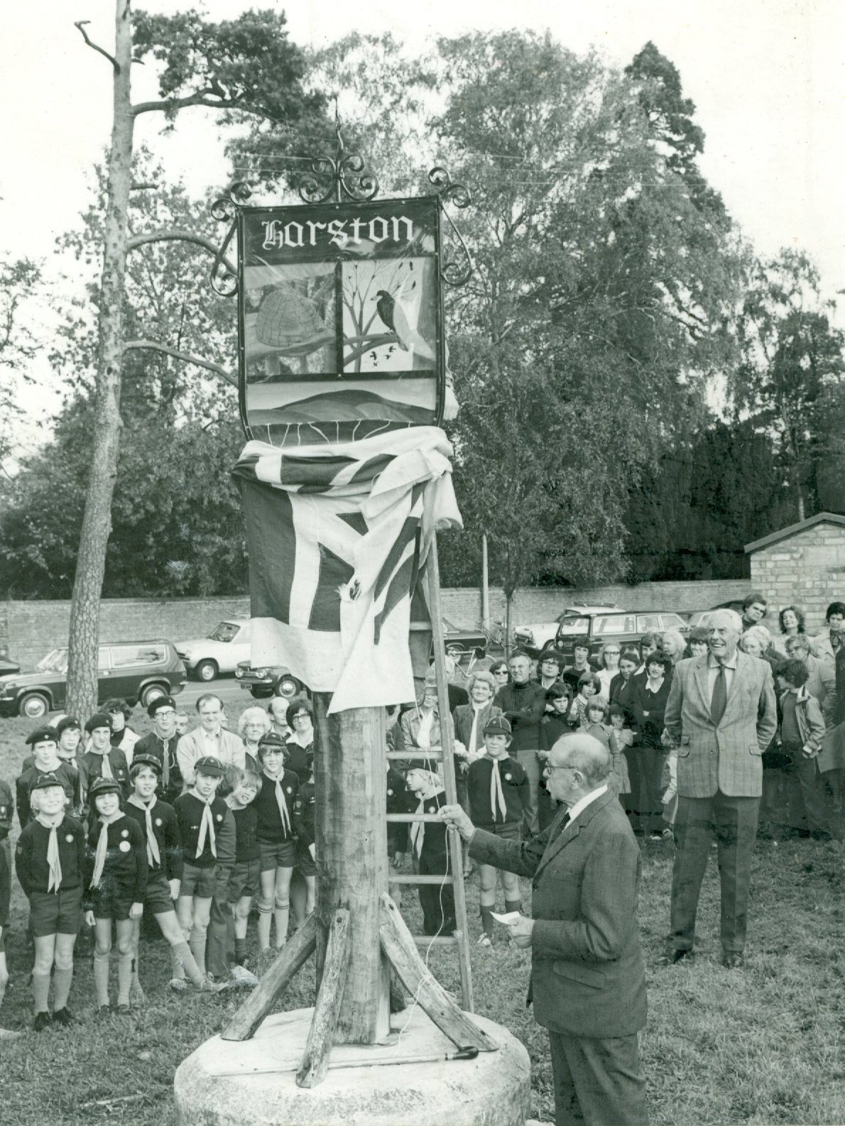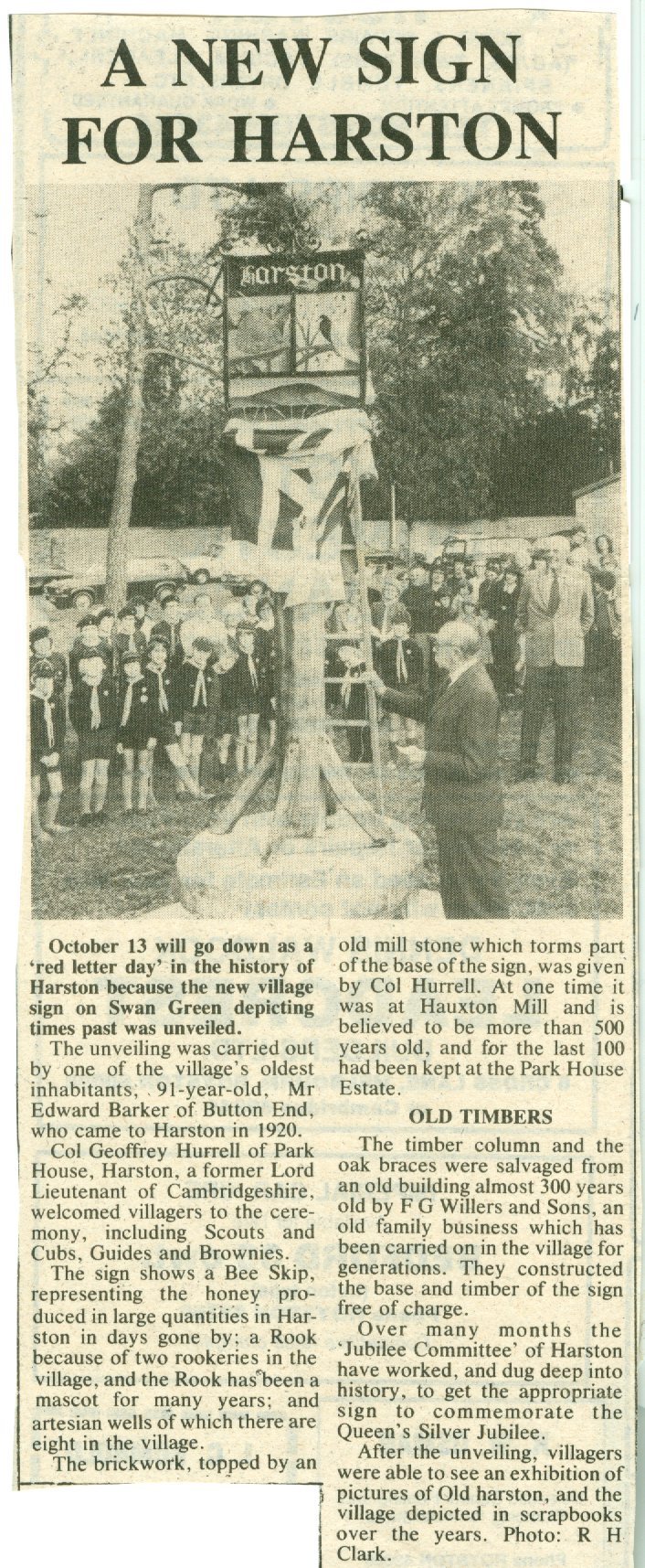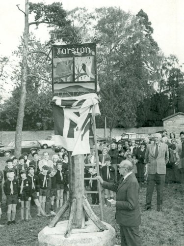 Another milestone for the village was the erection of a village sign. The whole village had been invited to a meeting in the Hall to decide upon a permanent memorial of the Queen's Silver Jubilee using monies raised from the Jubilee Day celebrations.