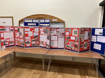 An earlier article published in 1927 advised local residents that Harston Waters had tonic properties and that a course of taking the waters was the real antidote to Reumatism, Liver and Kidney troubles. Harston residents were cited as proof positive of the effectiveness of the waters as 'People without a care having a clearness of skin and brightness of eye that is quite remarkable, especially the aged' A more recent interpretation of the village sign is on display in the new entrance foyer constructed in 2014. The newspaper article concerning the original is available here. In the 1980s a regular event was the Harston and Newton Horticultural Society Annual Show, here are some photographs from the 1982 show.