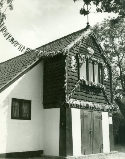 The copper rook on the gable end of the hall, seen in the second picture was made by Mr Harry Lawrance village Blacksmith. In October 1946 an application was made for the Hall to be vested into the Board of Charity Commissioners after approval by the Harston Parish Council. This was sealed on 18th April 1947 and in accordance with the scheme a Council of Management was formed consisting of 14 persons, 7 elected members and 7 representatives of Village Organizations. Dr Young retired as a Trustee and was replaced by the Vicar of Harston the Rev. Leonard Askham. Little is recorded about the Hall in the 1950's but mention is made elsewhere of 12th October 1963 when a Cambridge group 'The Ramblers' played at the Hall. They were the forerunner for a future group Pink Floyd.