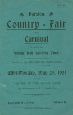 The village hall was officially opened on 2nd November 1923 by Sir William Graham Greene but prior to that there had been held Harston Whitsun Fetes in aid of the Village Hall Building Fund. One was held on Whit Monday 21st May 1923 in the grounds of the Manor House. The 1922 Fete secured the amount required before building could begin and the 1923 Fete was to raise further sums to cover the cost of the site. The Fete was opened by Sir Arthur Quiller-Couch, Professor of English Literature at Cambridge and well known eccentric. It included exhibition dancing, boxing and a wireless demonstration. A receiving set was exhibited and the demonstration included the reception by means of wireless telephony of concert items as broadcast in London by the London Broadcasting Company. As well as a Concert Party and Dancing on the Lawn there were side shows and guessing competitions such as the weight of a fowl and the number of varieties in a bunch of flowers.